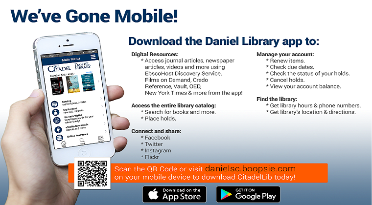 Daniel Library, The Citadel | 171 Moultrie Street | Charleston, SC 29409 | 843.953.6845 | reference@citadel.edu